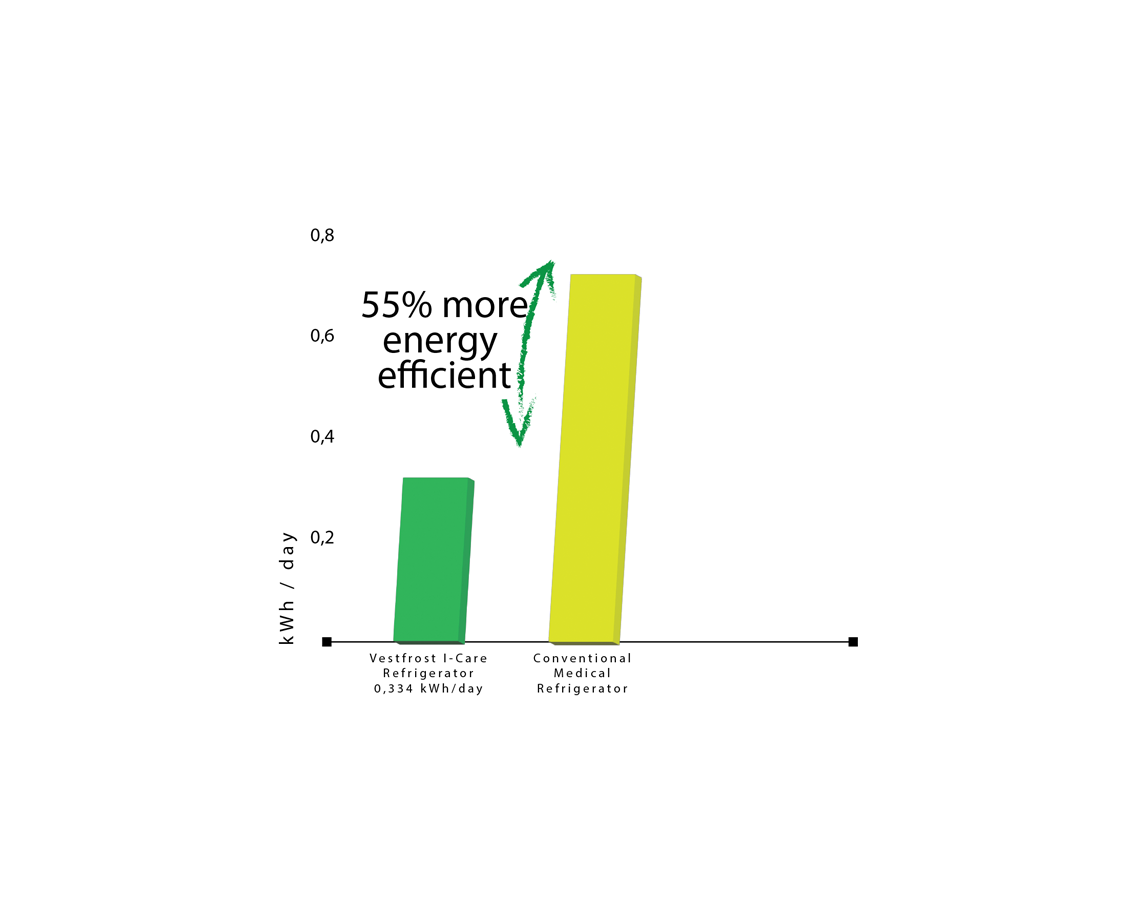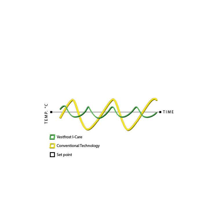 0%. Not an efficient solution. At Vestfrost we have introduced Adaptive Cooling Technology™, which has