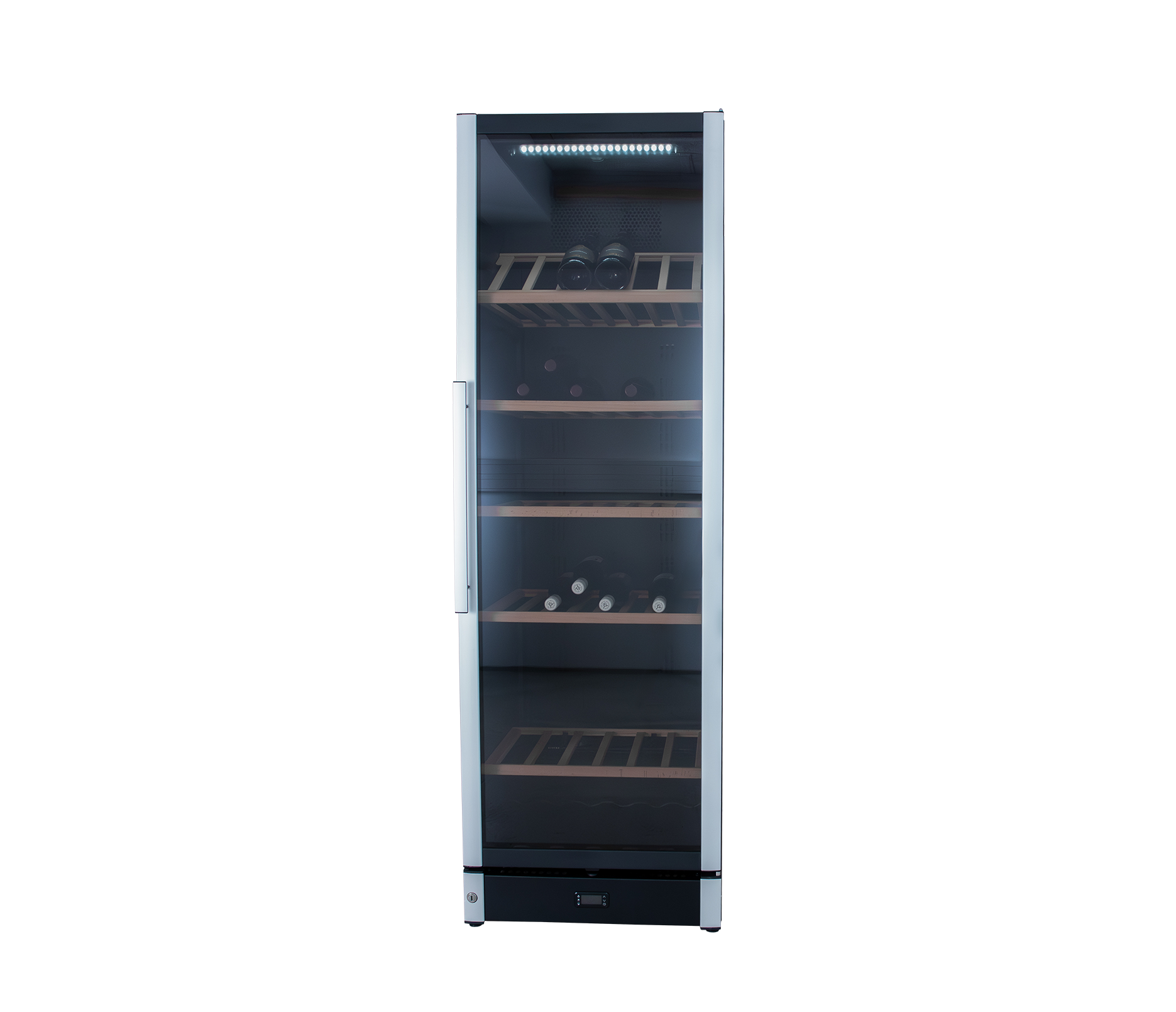 Wine refrigerators with multizone can be set to a bottom and a top temperature. The temperature range goes from 5°C to 22°C. The wine refrigerator is not divided, and therefore the two temperature settings will be mixed in the middle of the cabinet and give an extra third zone. Multizone cabinets can accommodate wines with different temperature requirements and at the same time ensure ready-to-serve wine in the top and / or bottom of the cabinet.