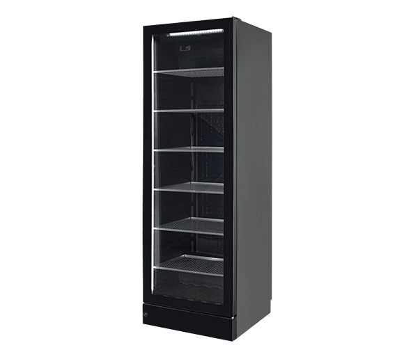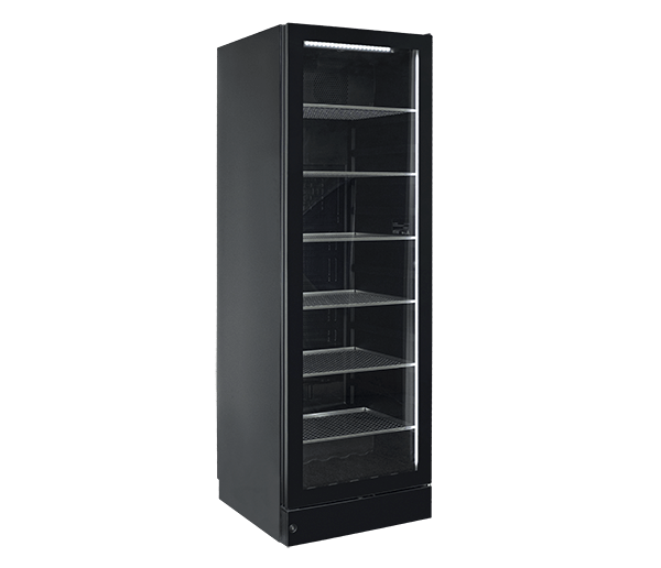 Exclusive Black-Glass display cooler to complete your beverage presentation and attract more focus. MFG 185 offers storage capacity for 224 pcs 0.5 L bottles and operates at temperature range between +2°C to +10°C.
