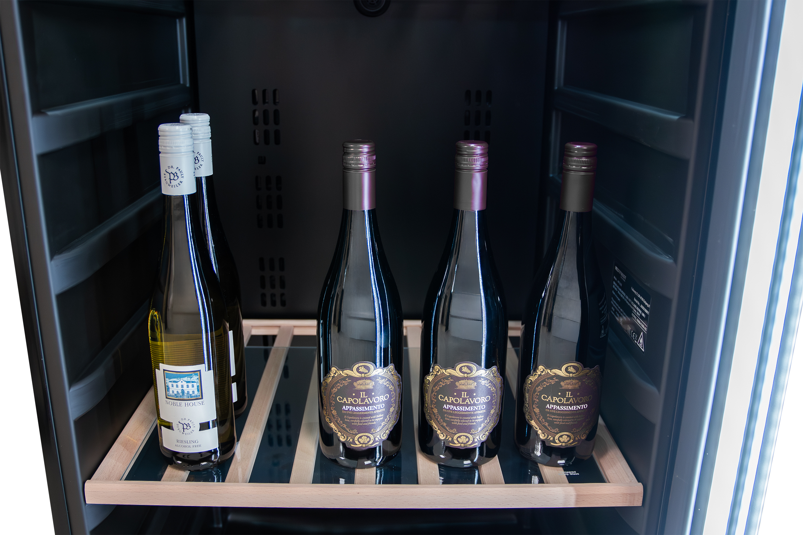 An automatic warning system is activated if the temperature in the wine refrigerator changes in relation to